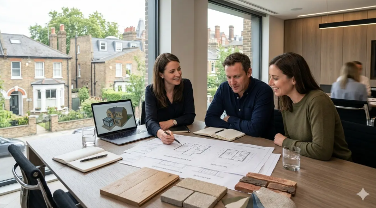 business professionals discussing cost-effectiveness and long-term solutions tied to local plumbing services.